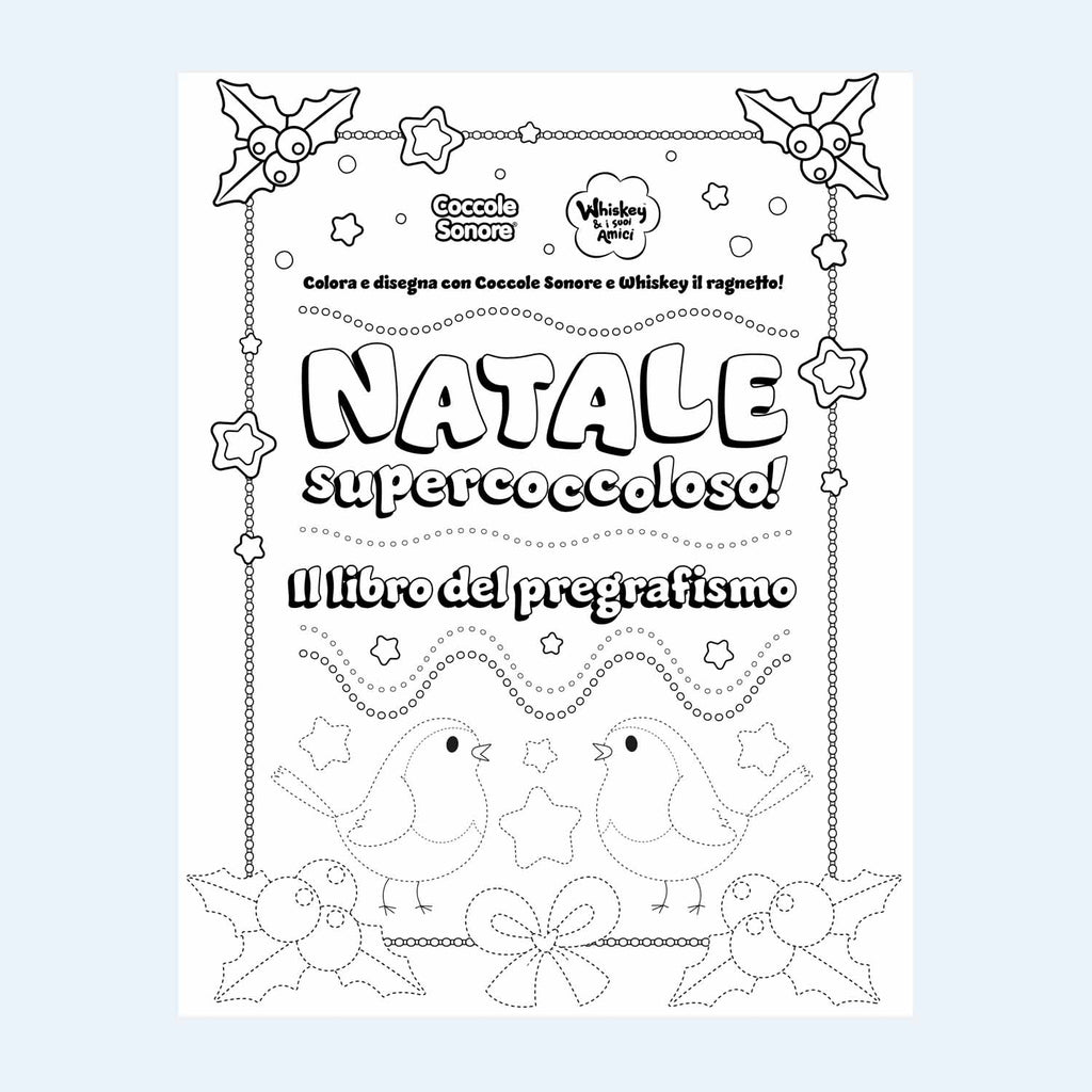 7 pagine tutte da colorare, disegnare ed iniziare a scrivere con Coccole Sonore e Whiskey & i suoi Amici.